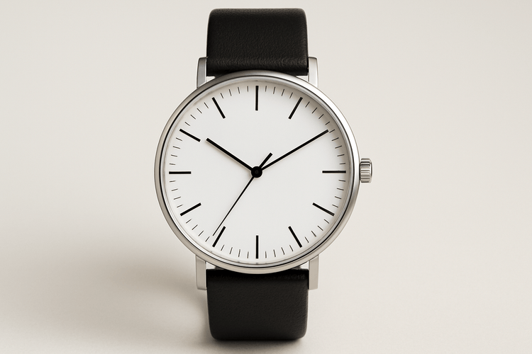 Montre Minimaliste Homme "Essentiel" 44mm - Acier & Cuir